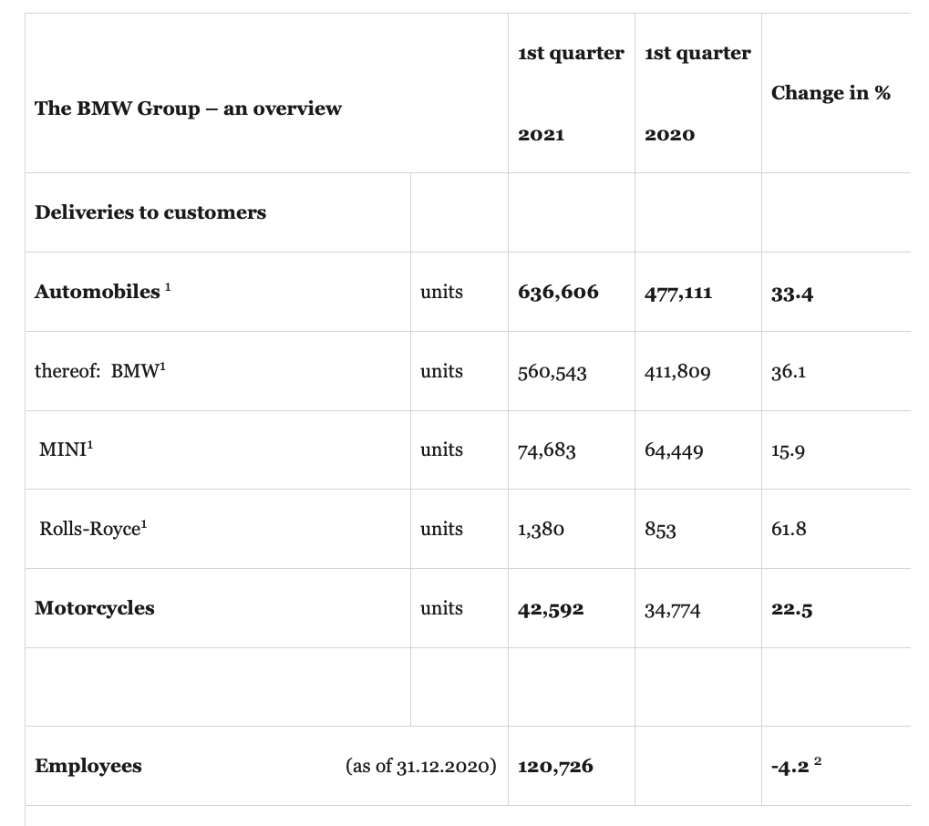 5月7日,德国宝马集团发布2021年第一季度财报。