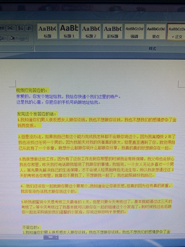 在接触被害人之初,负责搭讪的“聊手”会将自己的“人设”设成为一个曾被男性伤害过的年轻女性,再按照剧本与被害人在网上“谈情说爱”。经过数天的感情培养后,便会开始互相亲昵相称,继而提出奔现的想法。并诱惑受害者在网络直播平台消费刷礼物。