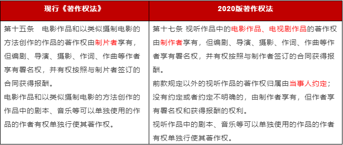 一个重要改动是,视听作品中的电影作品、电视剧作品的著作权享有者由“制片者”改为了“制作者”,后者的定义还需要随后的司法解释。