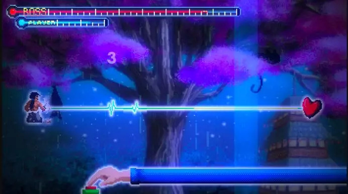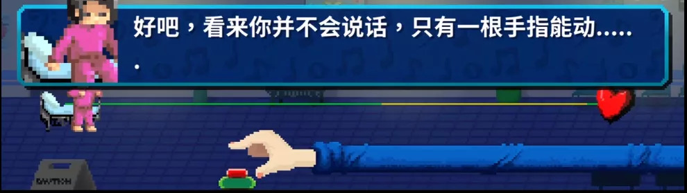 相比起其他加入剧情和故事的音乐游戏,《节奏医生》最特殊的一点就是各元素的融合。它动用了一切能和音乐合作的元素来进行协调,是音乐、画面、演出、文字一起在给玩家讲故事,而玩家通过除颤设定,也切身地以一己之力推动着这个故事的发展。