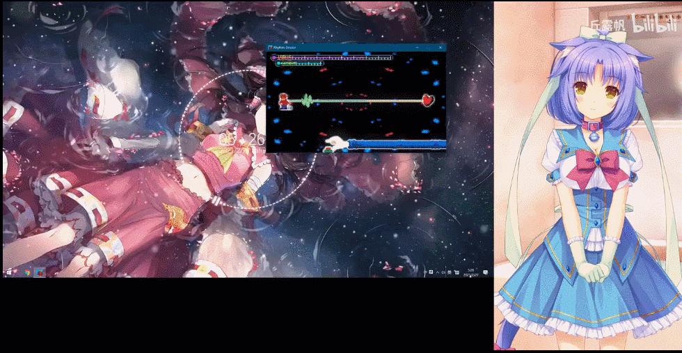 而游戏仅有的几首有歌词关卡的声画剧情表现,则更是一绝。给大量玩家留下极深印象的2-X“All The Time”讲述了医院里咖啡成瘾的男青年音乐创作者和抽烟成瘾的女咖啡师之间相互奔赴的故事,歌词将两者之间从暧昧情愫到坚定奔赴的过程描述了出来。声画表现上创新地使用了窗口移动踩点、场景转换奔赴来展现故事内容。
