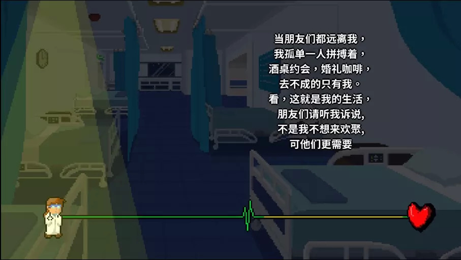 在3-X“One Shift More”关卡里,《节奏医生》更是通过歌曲和画面表现,来展示了医患关系真实的一面,一边是患者的紧张无助,一边是医生的繁忙无奈,真实而又幽默的台词,让不少从医人士泪目又感慨。