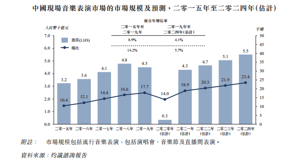 招股书显示,包括音乐节在内的中国现场音乐表演市场规模,由2015年约人民币32亿元增至2019年人民币45亿元,2015-2019年年复合增长率为8.9%。据估算,2024年将达人民币55亿元,2019-2024年年复合增长率4.1%。风华秋实也在相关方面获得收益,2018年营收1亿元人民币,2019年营收为5561万,2020年前三季度为5850万。