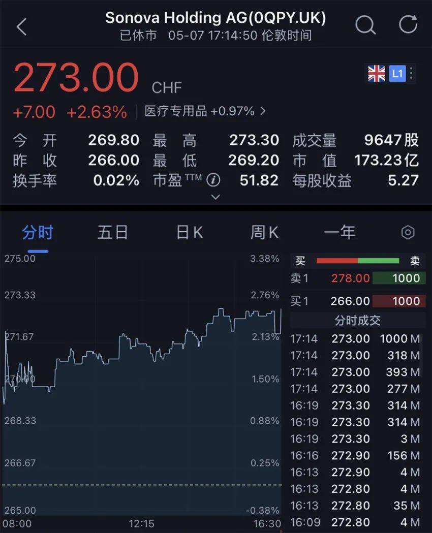 目前,双方已达成森海塞尔品牌未来使用的许可协议。收购消息公布后,Snova当日盘后股价上涨2.63%至273瑞士法郎(约1943.38元人民币)/股,市值为173.23亿瑞士法郎(约1233.15亿人民币)。
