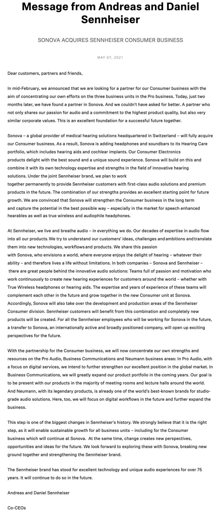 选择出售消费者业务,就是森海塞尔两兄弟思考的结果。