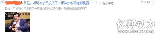三、获得薛蛮子和徐小平投资。与此同时,有消息称,薛蛮子和徐小平向杭州的某网红孵化器投资一千万。而业内人士向亿邦动力网确认,其投的正是前阿里集团O2O事业部负责人天机(本名李川)创建的公司。