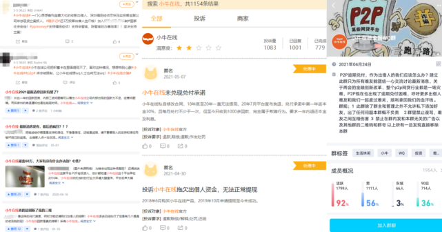 雷达财经注意到,在警方调查期间乃至于调查结果公布后,微博、知乎、黑猫投诉等平台中仍有大量投资者控诉小牛在线平台未按时兑付的事实。