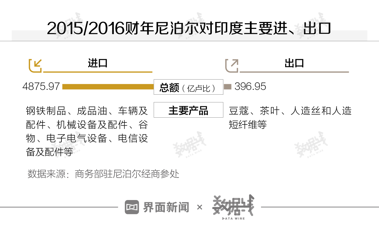 另据驻尼泊尔经商参处最新可查数据,2015/16财年尼泊尔对印度进口商品总额达4875.97亿卢比,钢铁制品、成品油、车辆及配件等为主要进口产品。