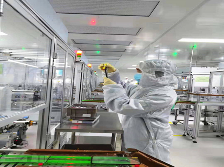 进入5月,气温升高,工业港园区各企业忙生产、抓建设也是热情高涨。在电子信息标准厂房二期,成都安捷诚电子科技有限公司生产线上,工人们专心致志地对OLED玻璃盖板进行初选,高速运转的机器对玻璃盖板进行清洗,身着白色、蓝色、灰色防静电服的工作人员忙碌其间,一片热火朝天的繁忙景象。