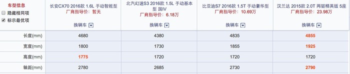 可是,在空间方面,幻速S3的车内长宽高和轴距分别仅有4380*1730*1720毫米和2685毫米,而长安CX70的长宽高和轴距分别为4680*1800*1750毫米和2780毫米,轴距比比亚迪S7的2730毫米轴距还长50毫米,甚至仅比7座汉兰达2790毫米的轴距小10毫米(也就是1厘米)。