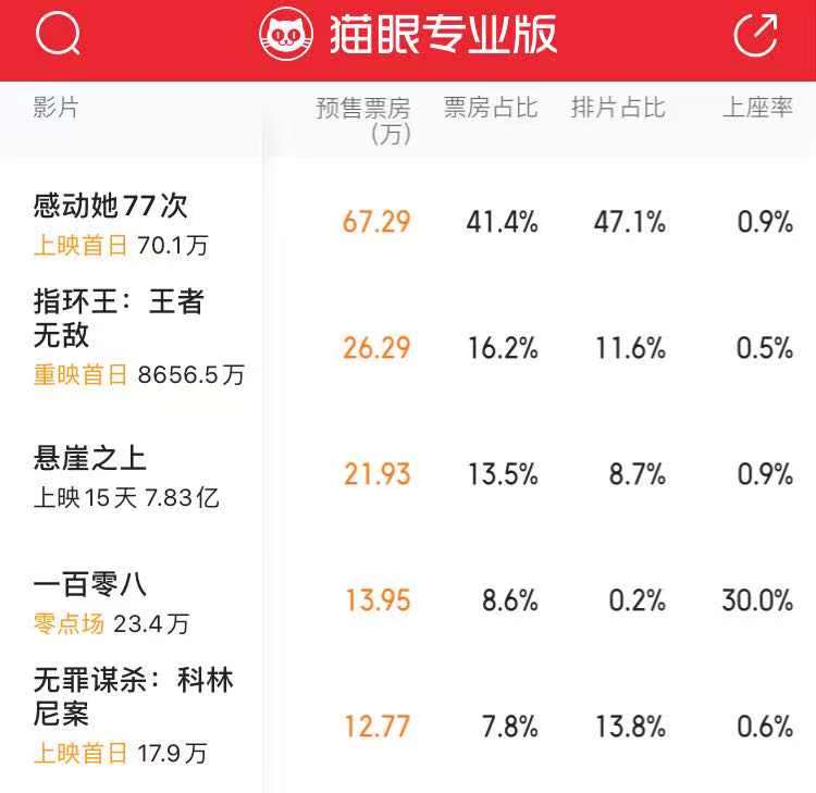 更大的冲击已经提上日程。下个周末《感动她77次》《指环王3》《无罪谋杀》等新片上映,而院线似乎也愿意将票房期待交棒给新的选手,目前《感动她77次》首日排片达到47.3%,《指环王3》排片达到11.6%,而《悬崖之下》排片下滑至8.7%。而到了5月21日,《速激9》似乎已经完成了提前“锁场”,在无新片入场的情况下,该片排片占比可能超过50%。
