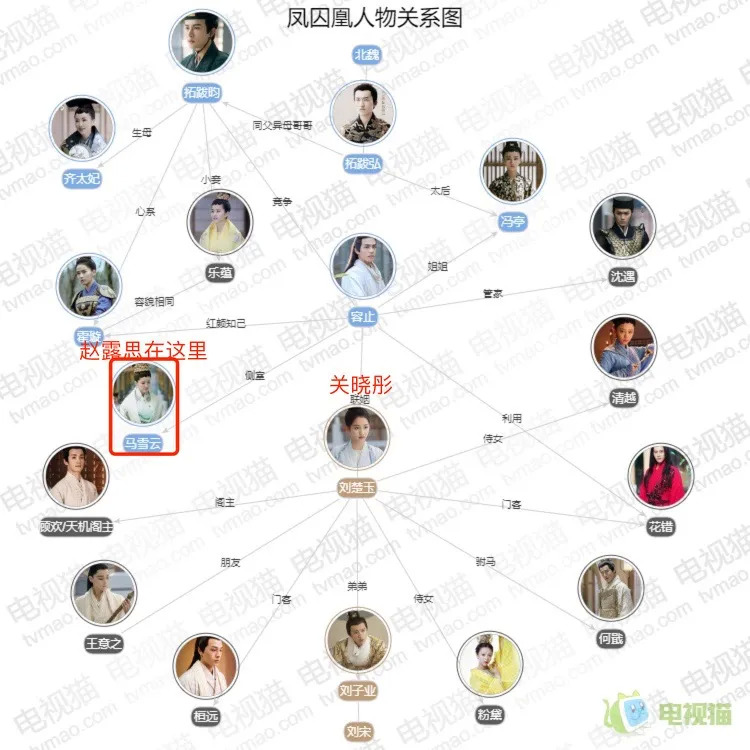 先说一个冷知识,赵露思演过《凤求凰》。不过翻开《凤求凰》的人物图谱,得用放大镜,才能找到赵露思的角色。