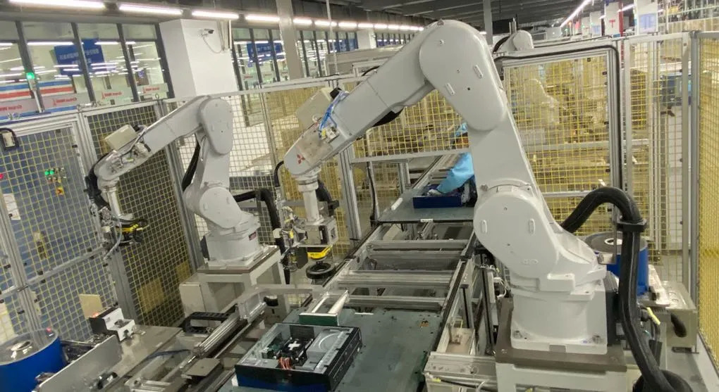 湖南长城计算机智能制造车间,机械臂正在工作。