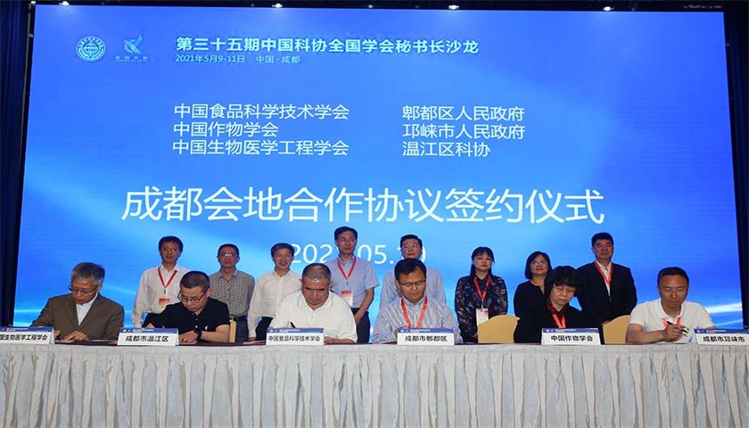 活动中,一批会地合作签约项目落地。其中,中国作物学会与邛崃市政府将合作共建“科技服务联合体—邛崃市种业科技服务创新基地”,将解决种业发展中存在的种子培育、成果转化、人才需求等突出问题;中国食品科学技术学会与郫都区政府签订合作框架协议,将建立会地联合创新中心,进扎实推进创新驱动助力郫都区食品饮料产业发展。