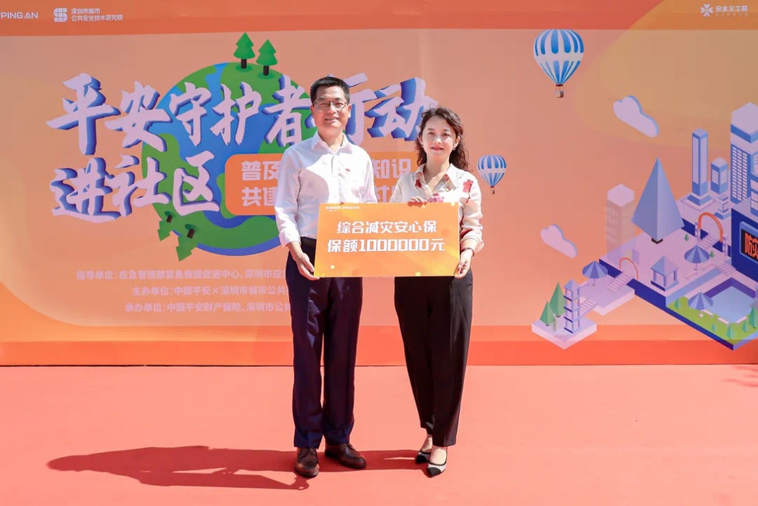 为助力全面推进综合减灾社区创建,中国平安向深圳100个社区赠送了“综合减灾安心保”公益保险,为社区参与减灾防灾活动现场的工作人员、参与者、第三者及活动事故提供公益风险保障,助推社区防灾减灾活动开展;同时,中国平安将定制安责险、意外险、家财险等一揽子保险产品,为广大社区居民提供更全面的生命财产保障。