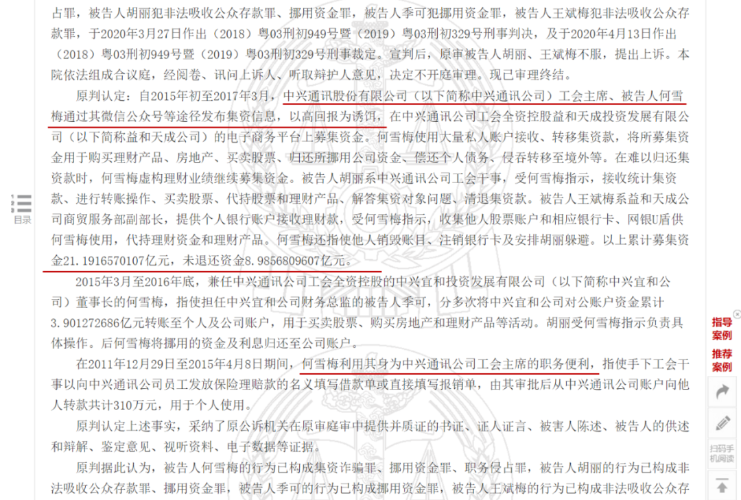 又有“中兴工会主席诈骗21亿元大案”曝光