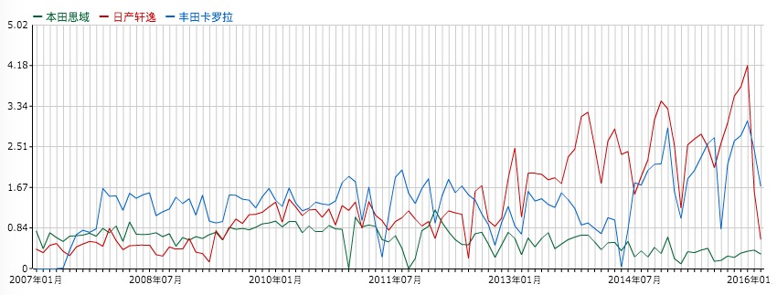 回顾思域的销量,曾经月销万辆以上的思域如今是风光不再。自2012年1月取得1.21万辆销量后开始直线下滑,下滑到2015年2月仅有0.1万辆,在2015年7月也仅有0.15万辆。据统计,思域在2015年总计销售了3.27万辆,今年前2个月销量也仅有0.68万辆。
