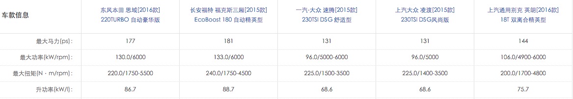 现在,第十代思域搭载1.5T和1.0T发动机,其中1.5T发动机输出177马力和220牛米,马力和扭矩不及同排量涡轮发动机的福克斯1.5T强,但比搭载1.4T发动机的速腾、凌渡和英朗的马力都强,扭矩仅大过英朗1.4T发动机。