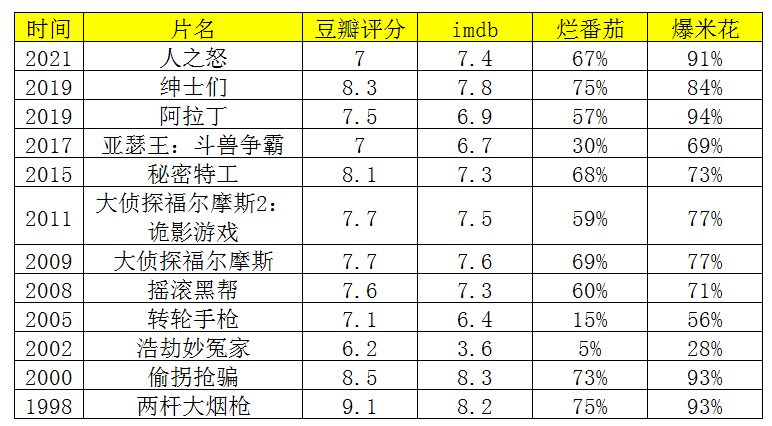 这或许源于多年来国内影迷对于盖·里奇的善意。如果对比以往盖·里奇电影的豆瓣评分和IMDb评分,会发现其差距要大于两个体系正常的差值。