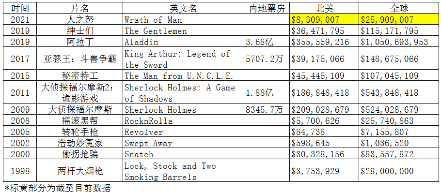 除了这部电影,从《秘密特工》开始的几部电影都保持着北美约3000万美元、全球1亿美元的票房表现,只能保证中小体量电影的回本。以《人之怒》目前的表现,大概也会在这条线上徘徊。