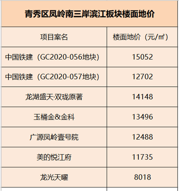 在南宁东扩战略下,凤岭南滨江有望成为南宁滨江居住区新中心。众多品牌房企茆足劲抢凤岭南的临江地块,每一场土拍都能引起一场兴风血雨的厮杀,从2018年10月中国铁建凤岭国际城的5700元/㎡,到2019年6月美的悦江府11735元/㎡,2020年7月中国铁建·西派御江的15052元/平㎡的楼面地价,仅两年时间就破万的地价与五象湖核心区齐头并进,接力五象湖成为房价集中迈入“2万+”的板块,凤岭南滨江价值继续书写“神话”。
