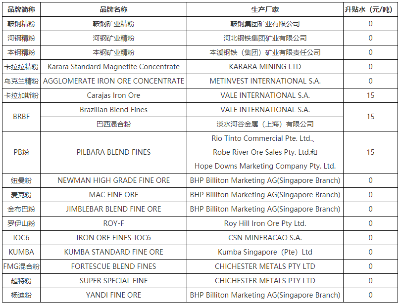 在新合约中,铁矿石品牌升贴水占各品牌价差的比例将有所下降。