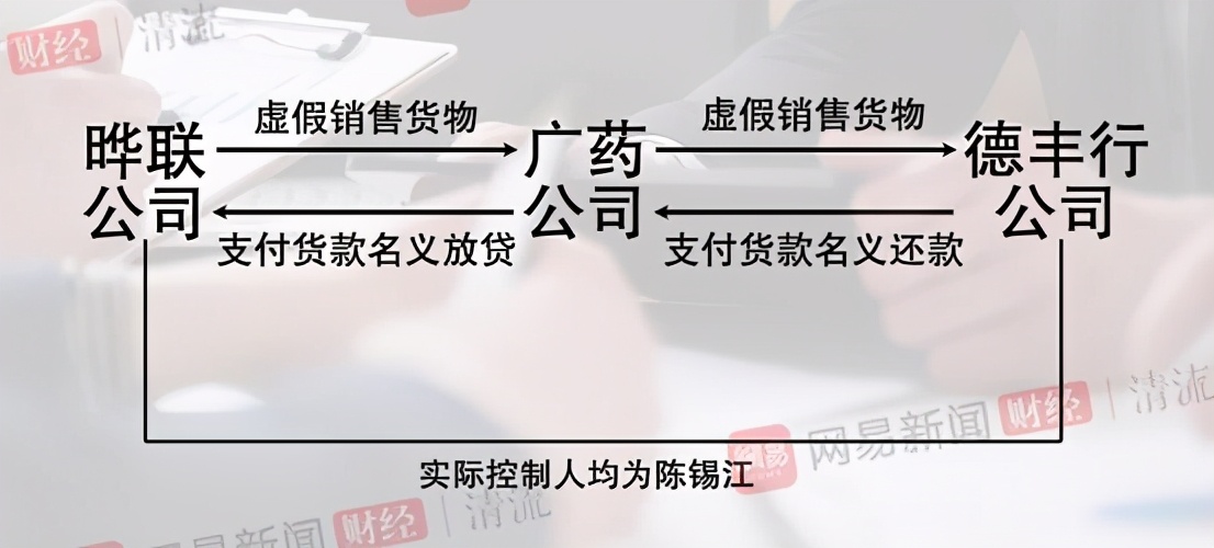 例如,另一起诉讼案件显示,广药公司曾与东莞市晔联道路改性沥青有限公司(下称为“晔联公司”)签订沥青买卖合同,以支付货款为由发放贷款,再由广州德丰行石化有限公司与广药公司(下称“德丰行公司”)签订沥青买卖合同,以支付货款为由返还贷款本息和过单费。但实际上,晔联公司和德丰行公司的实际控制人均为陈锡江。