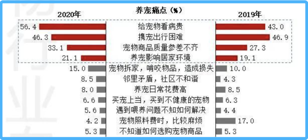 2019-2020年养宠痛点(图片来源:《2020中国宠物医疗行业白皮书》)