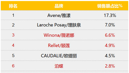 (2020年阿里平台化妆水/爽肤水喷雾TOP10品牌分布,红字为国货品牌 图源2020喷雾型美妆产品市场状况及趋势洞察)