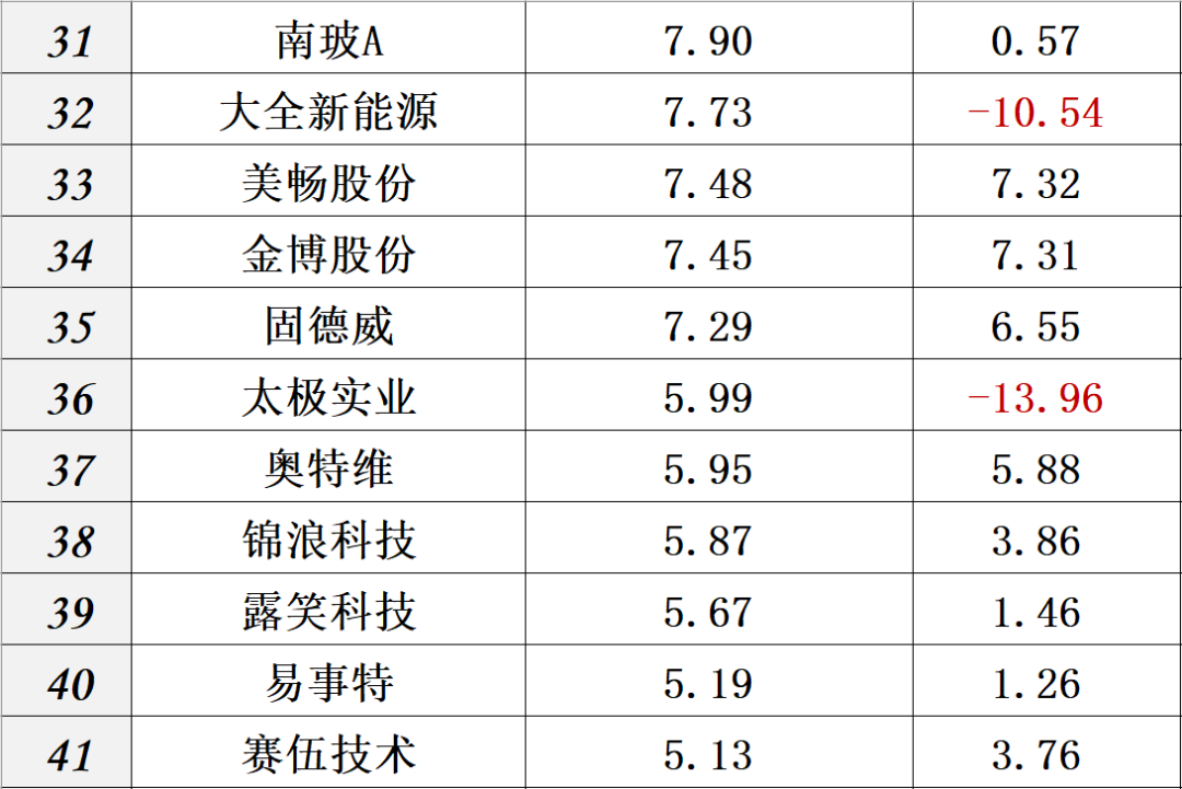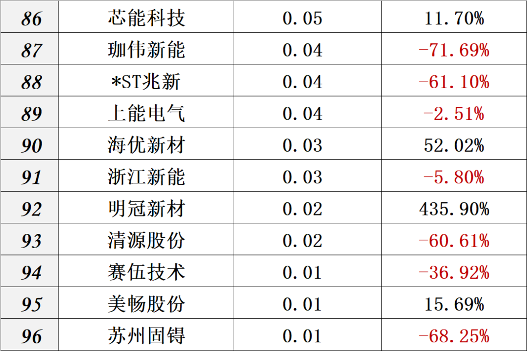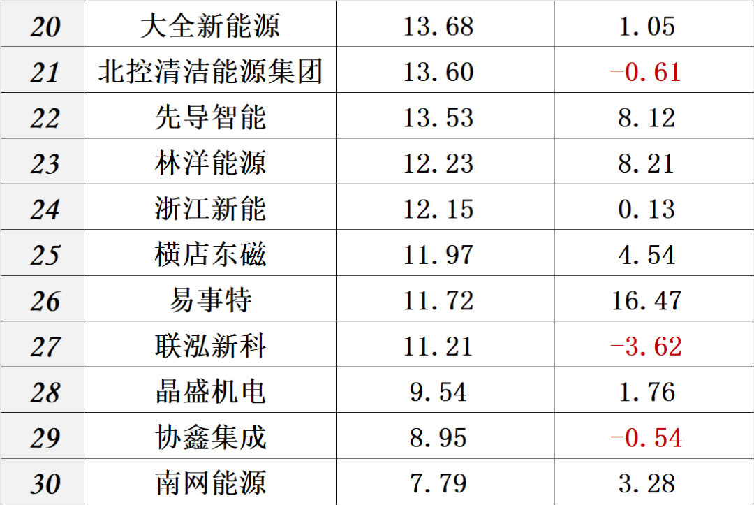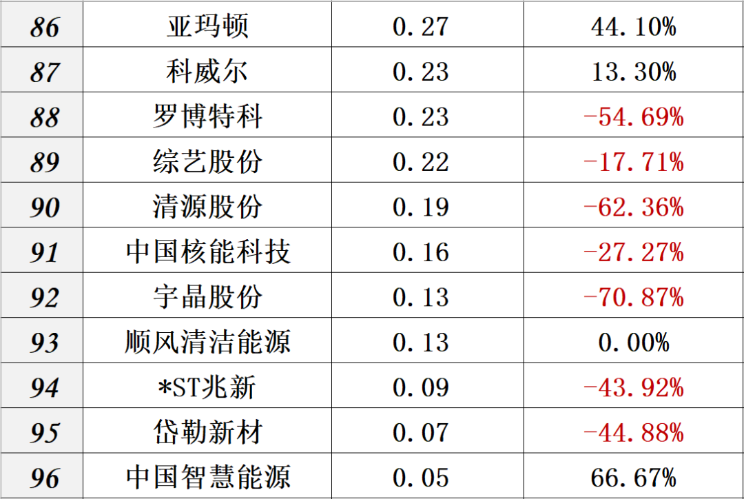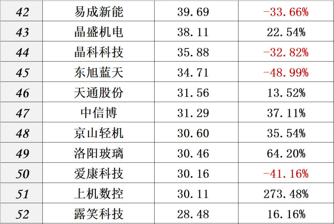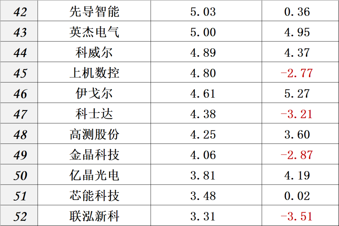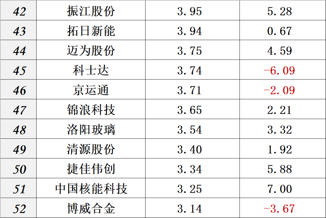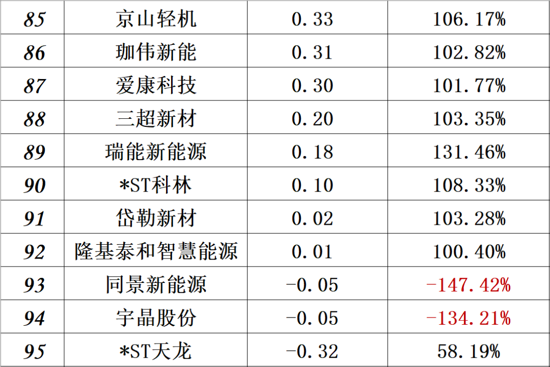 其中,52家光伏企业净筹资规模在1亿元以上,24家企业净筹资在10亿元以上,前三名为吉电股份、净筹资84.55亿元,晶科能源、净筹资62.97亿元,通威股份、57.95亿元。