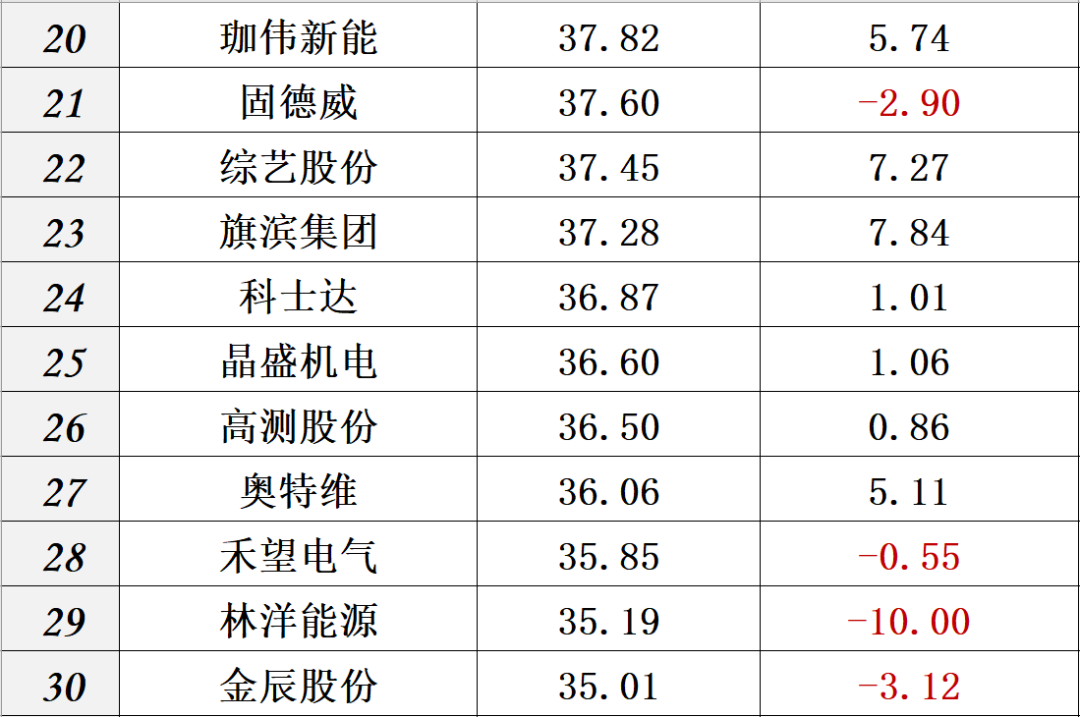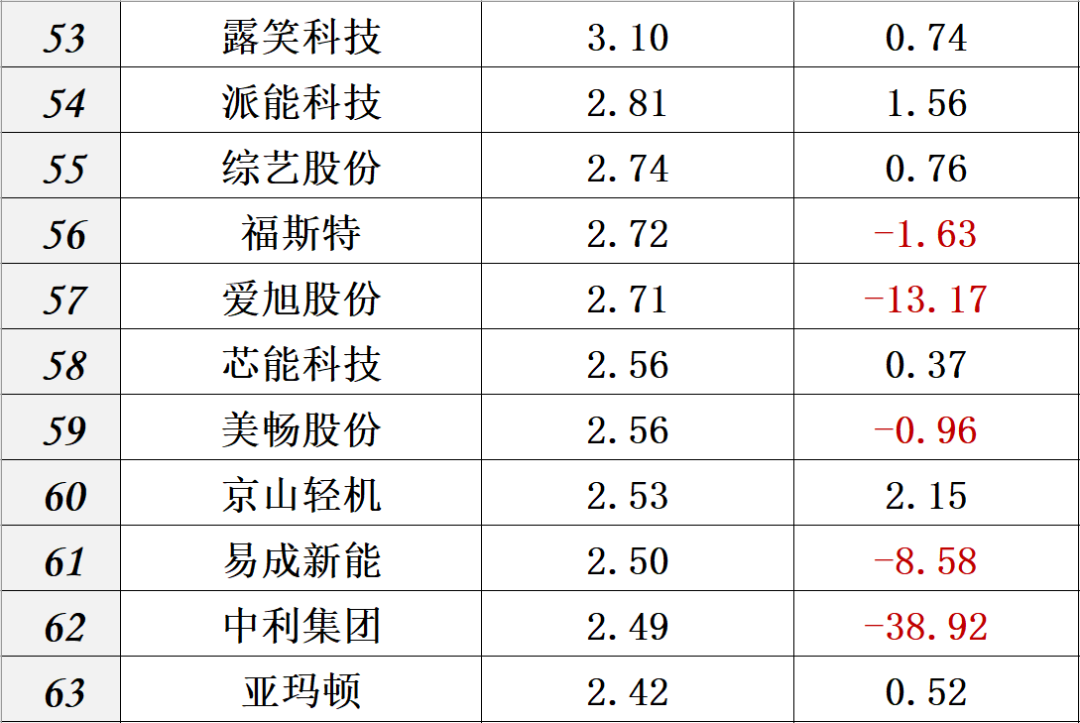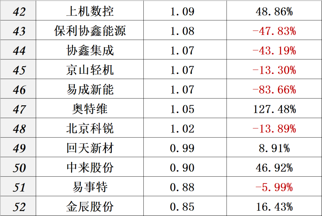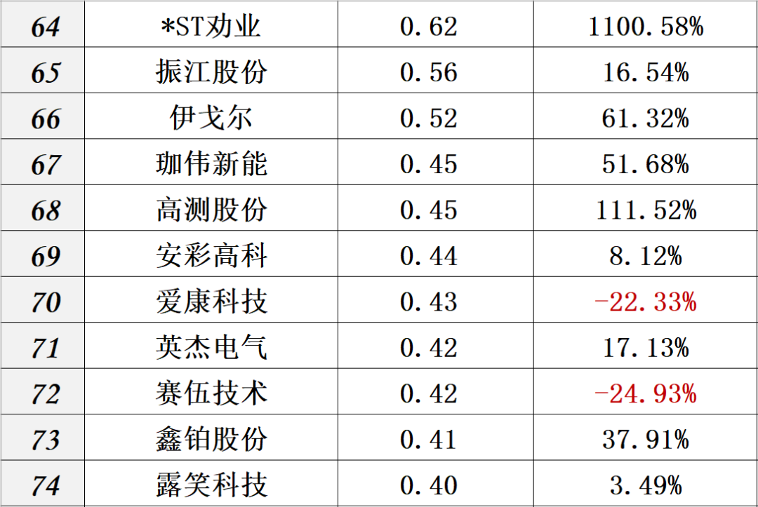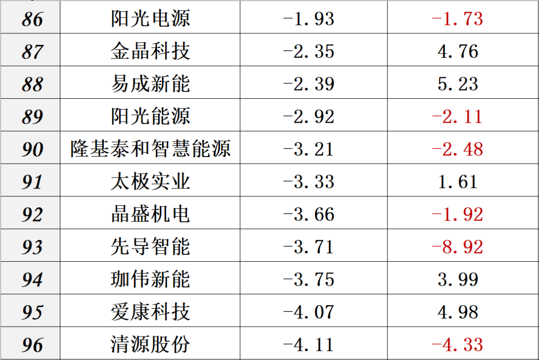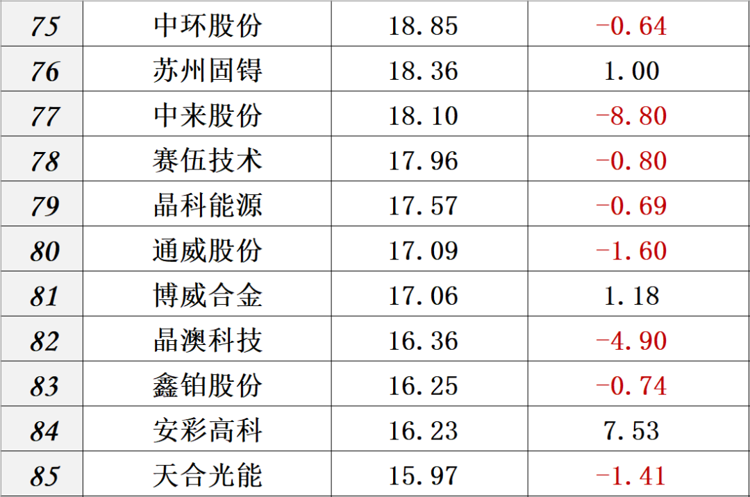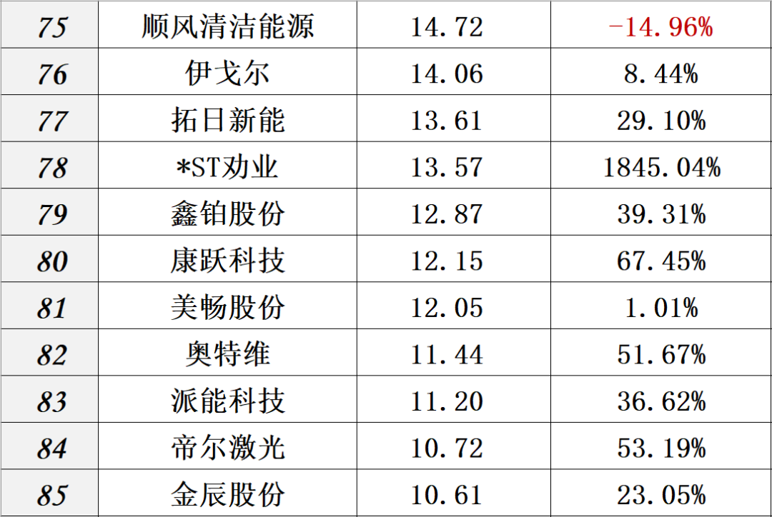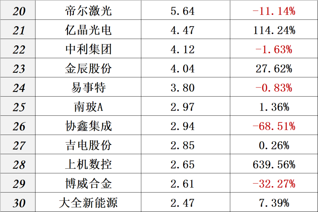 其中,52家光伏企业净筹资规模在1亿元以上,24家企业净筹资在10亿元以上,前三名为吉电股份、净筹资84.55亿元,晶科能源、净筹资62.97亿元,通威股份、57.95亿元。