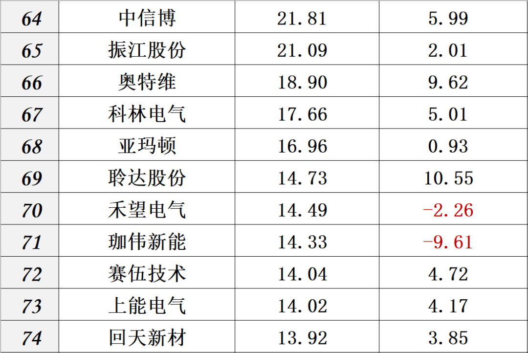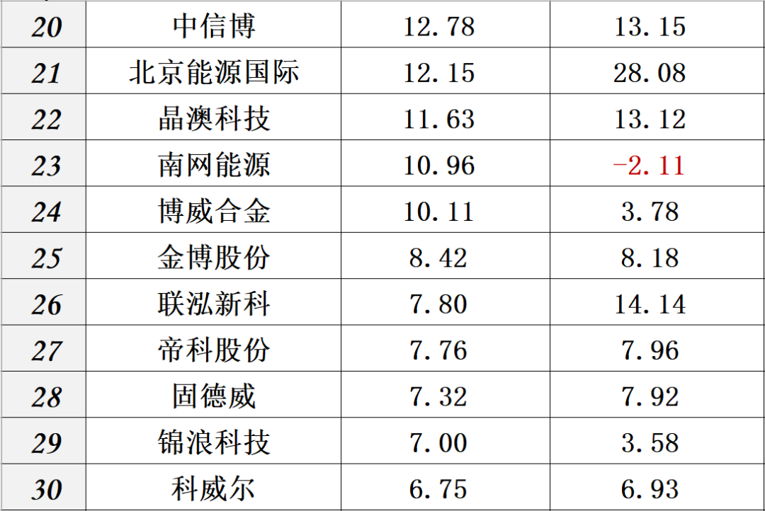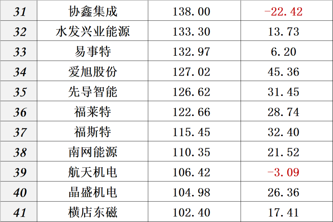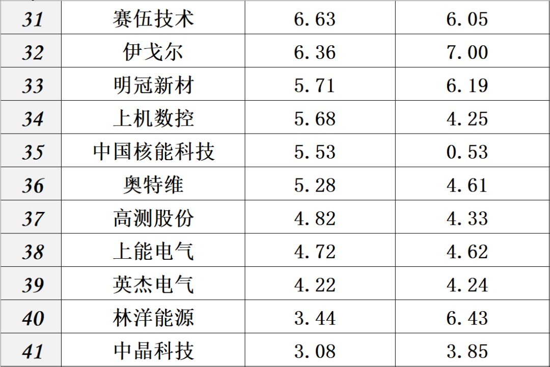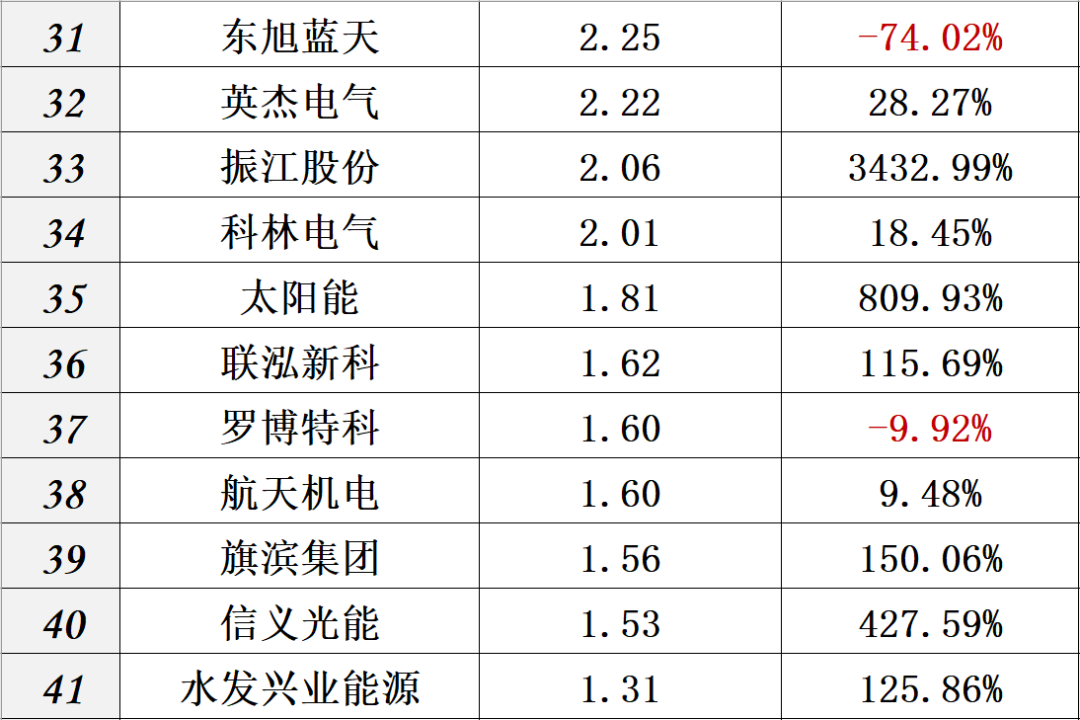 从增速看,60家光伏企业预收款规模实现正增长,36家企业实现50%以上高速增长,24家企业增幅在100%以上,在预收款规模超10亿元以上的企业中增长最快的三家企业为先导智能、增长140.87%,晶盛机电、增长98.87%,正泰电器、增长53.23%。
