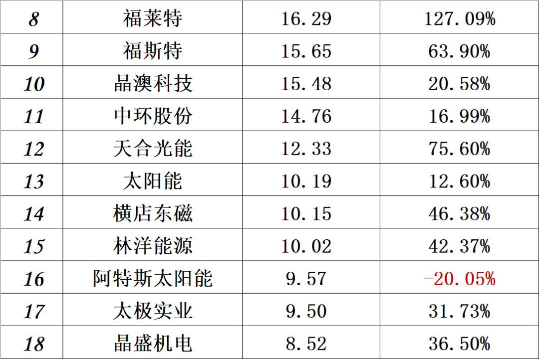 从中我们可以明显看到,中国光伏行业整体在加速成长,很多企业多项核心数据创历史新高,比如: