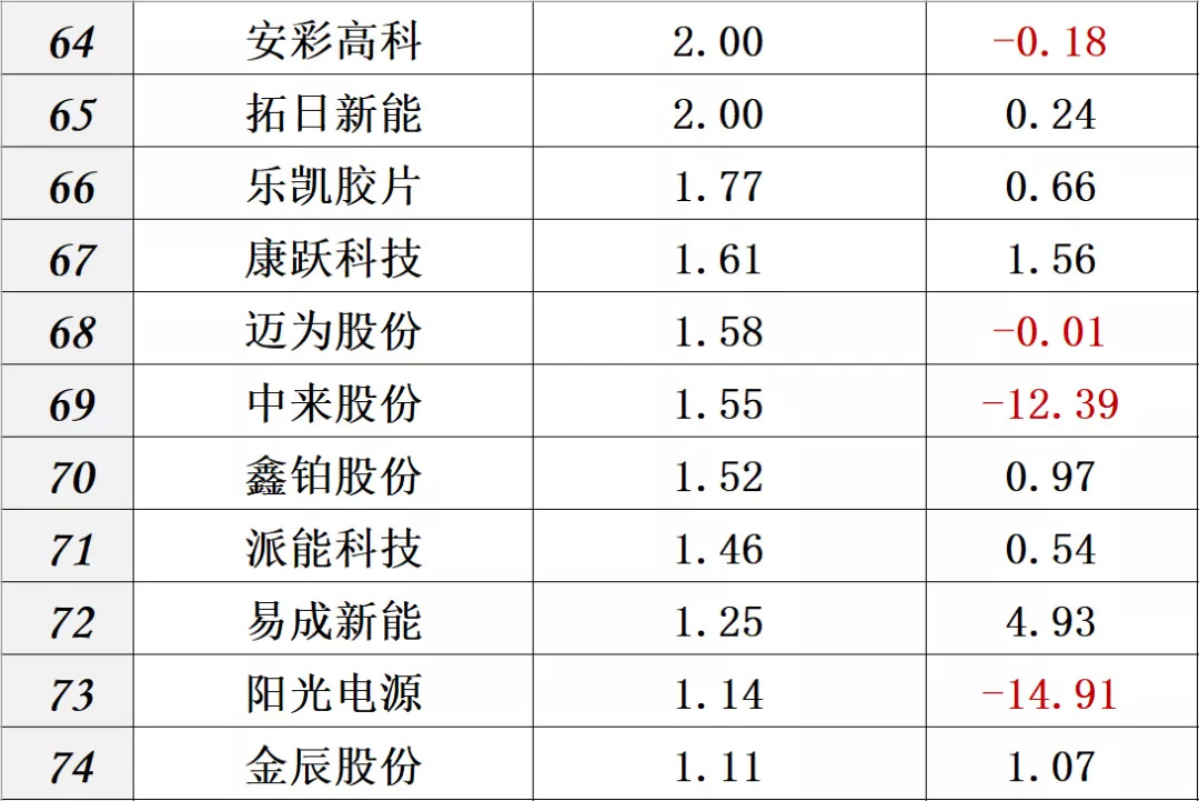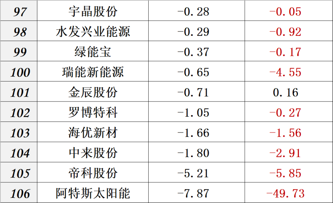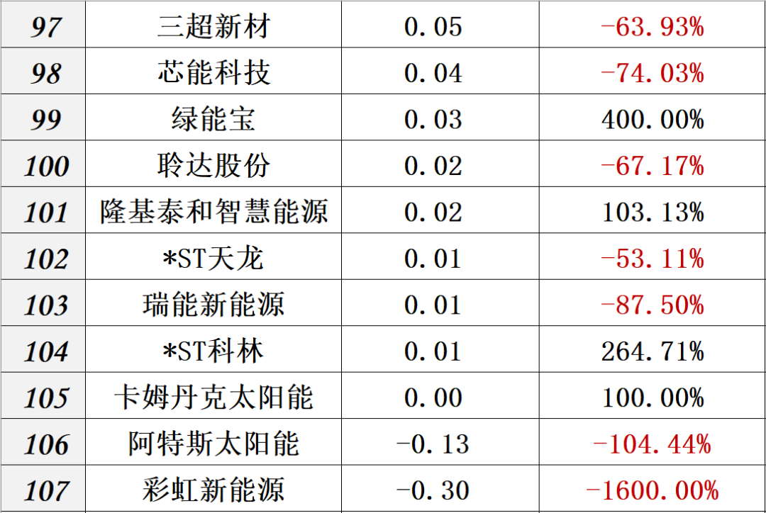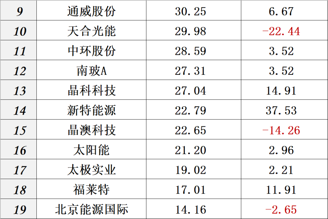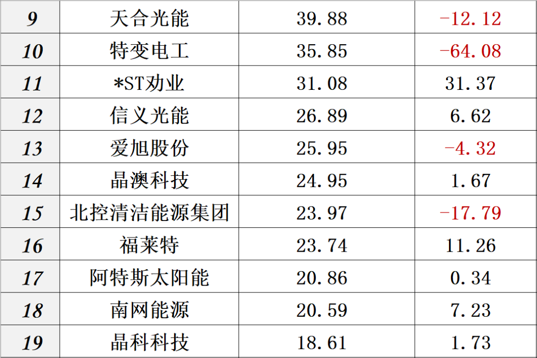 另外,14家企业经营现金流为负(资金净流出),最低的三家企业为阿特斯、经营现金流净额为-7.87亿元,帝科股份、-5.21亿元,中来股份、-1.80亿元。