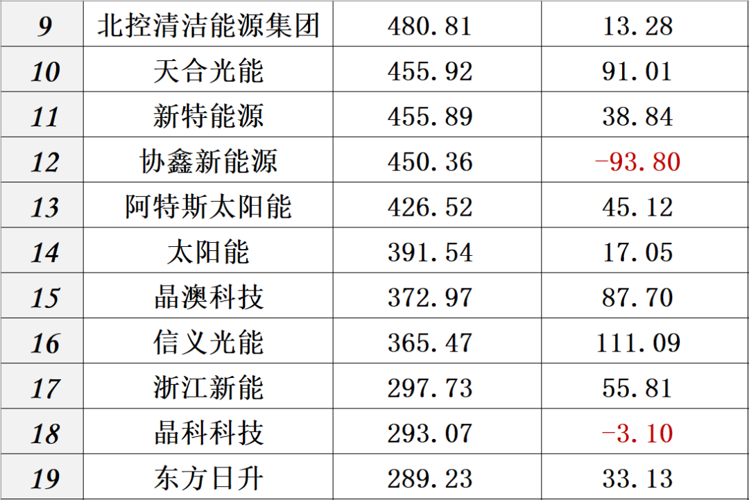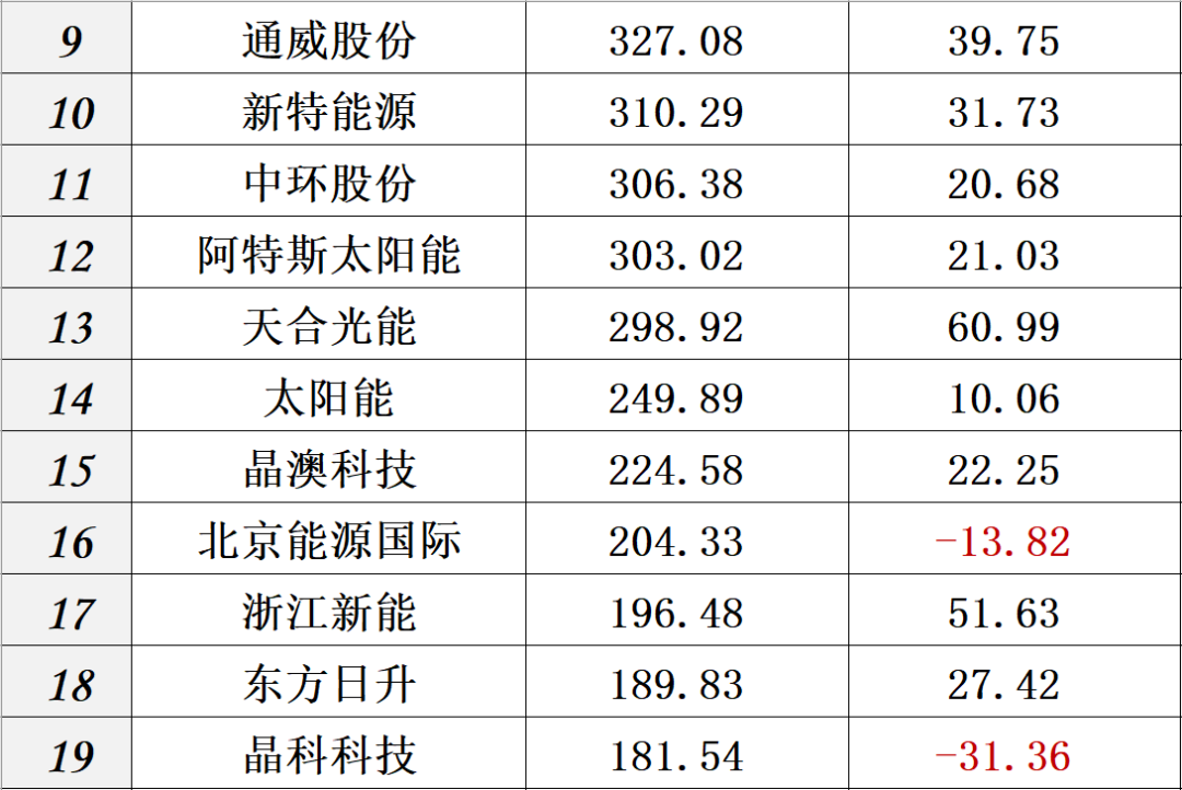 1.前十名光伏企业净利润合计为346.28亿元,占整体比重达76.42%。