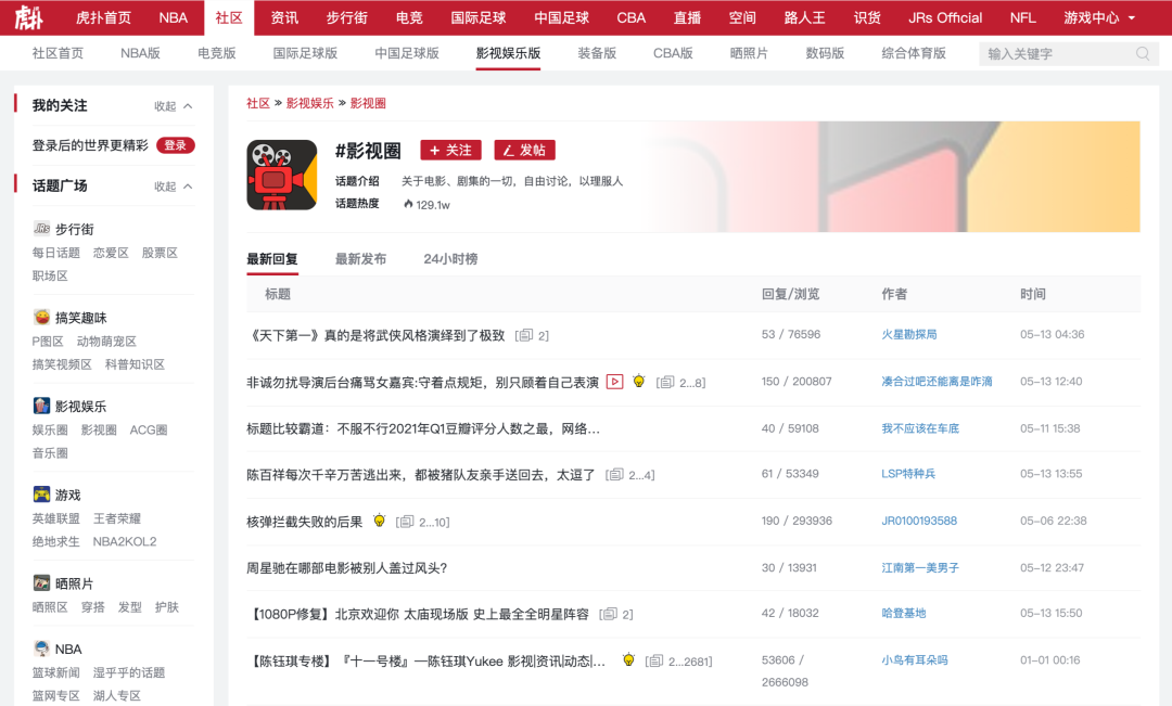 发展至今,虎扑已经从专注于篮球资讯为主的社区论坛,成长为包含体育、游戏、影视、步行街、女神评选等多个内容板块的泛娱乐社区,其中,影视区虎扑值也成为针对直男群体的营销新阵地,娱乐明星、社会公众人物的喜爱值也代表着直男审美、直男态度。