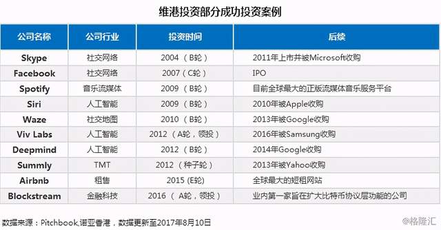 迄今为止,许多被投企业已经成为了AI领域的佼佼者,被各自行业内的领先企业收购或上市,包括地图应用Waze和语音控制程序Siri,前者被谷歌斥资11亿美元收购,后者被苹果收购后成为iPhone的语音助理服务。维港投资亦是Facebook、Spotify等科技巨头的早期投资者。