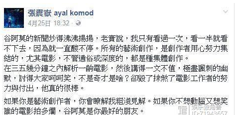 事实上,影视剧的版权保护早已不是什么新鲜的议题。早在二十世纪初叶,当《伯尔尼公约》在柏林修订之际,适值电影问世,该公约第14条即明确宣布,为电影作品提供著作权保护。我国《著作权法》也明确将电影电视剧这类视听作品纳入保护范围,相关著作权人享有播放以及改编等多种权利,“一不小心”就侵权的事情确可能发生。电影解说鼻祖之一谷阿莫不止一次因被片商指控侵权甚至被状告至法庭。音乐人张震岳曾在Facebook公开表示谷阿莫是一个“毁了电影工作者努力付出的奇才”。