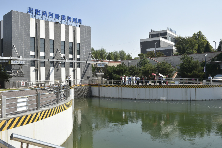 ↑位于北京房山的南水北调中线北拒马河暗渠节制闸(2019年9月3日摄)。
