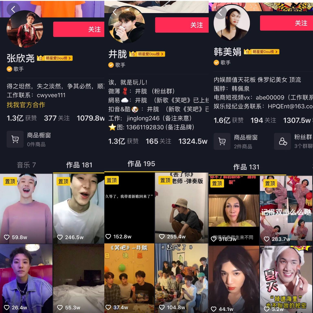《创造营2021》学员张欣尧、井胧、韩佩泉在抖音均有超千万粉丝 / 抖音截图