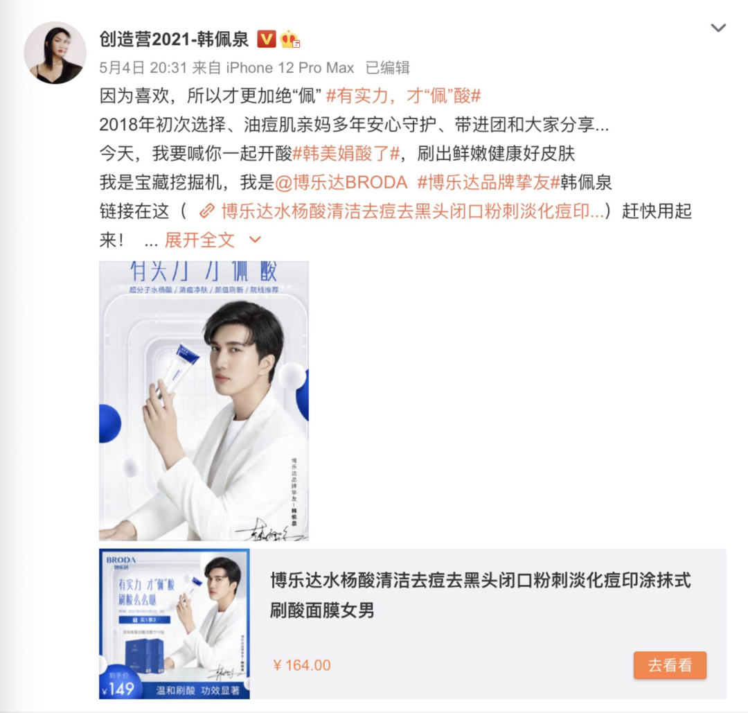 韩佩泉被淘汰后的“带货”微博 / 微博截图