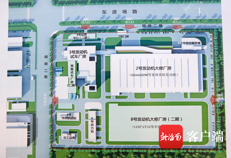 项目位于海口市临空经济区综合保税区内,占地面积200.23亩,总建筑面积80370㎡(其中一期48650㎡)。一期包含发动机大修厂房、动力站及试车台等7个构筑物,具体包括发动机分解、清洗、检测、装配、试车等维修业务。项目开工时间2020年9月,项目竣工时间2022年12月。