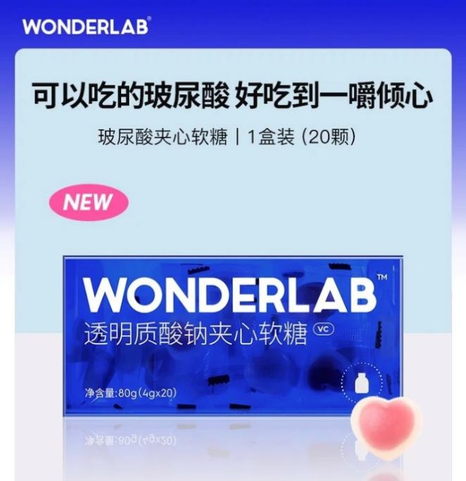 与华熙生物不同,代餐品牌WonderLab推出了口服玻尿酸软糖,仅上市一个月,就以75.2%的市场占有率登顶该品类市场第一宝座。