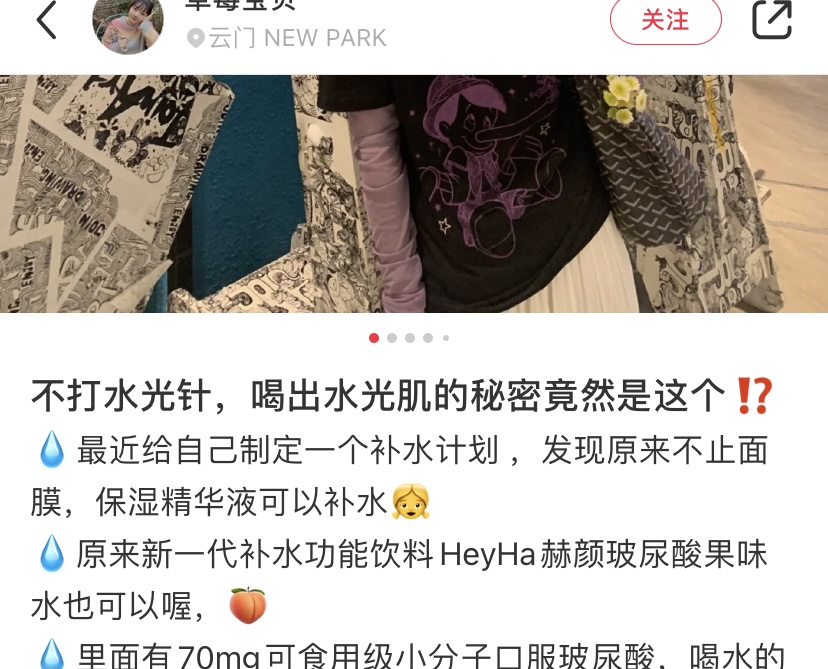 很快,抖音、小红书等平台可以说是被形形色色的玻尿酸饮品、玻尿酸食品占据,“可以吃的玻尿酸”、“实现玻尿酸自由”,KOL们各种各样的彩虹屁,使得玻尿酸食品在社交网络上大火特火,也时刻撩动着爱美人士的心弦。