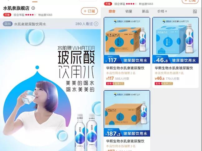以华熙生物的水肌泉玻尿酸饮用水为例,与各大社交平台上疯狂的营销相比,销量就显得极为惨淡了,店铺粉丝数不过千人。不仅如此,也有消费者评论“就是普通的水味”、“感觉就是噱头”等等,甚至有消费者直言“这就是智商税,顶多算是心理安慰”。