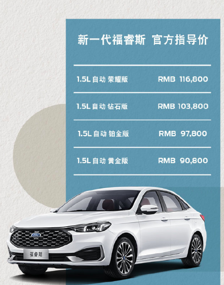 福特新一代福睿斯上市,售价9.08万-11.68万元