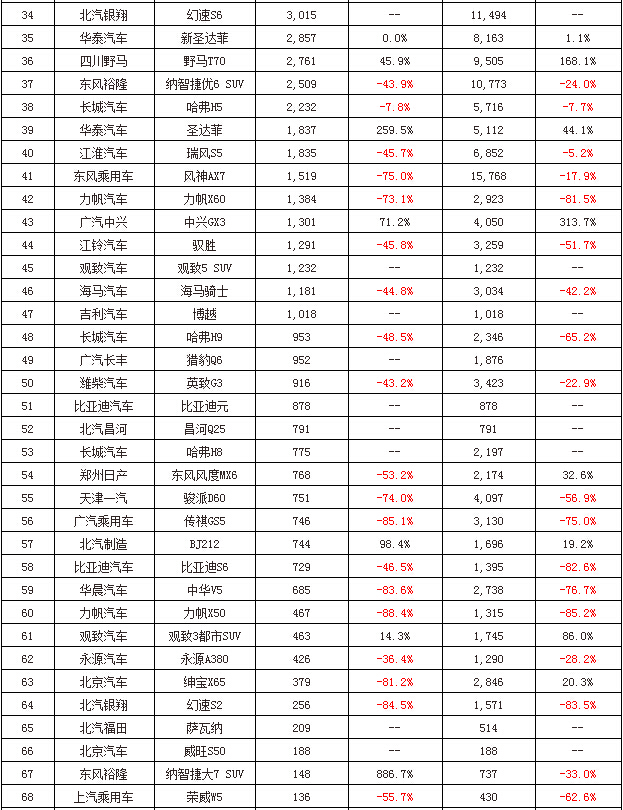 另外,长安旗下的小型SUV——CS35本月表现不错,月销1.8万辆,直逼同为小型SUV的瑞风S3。