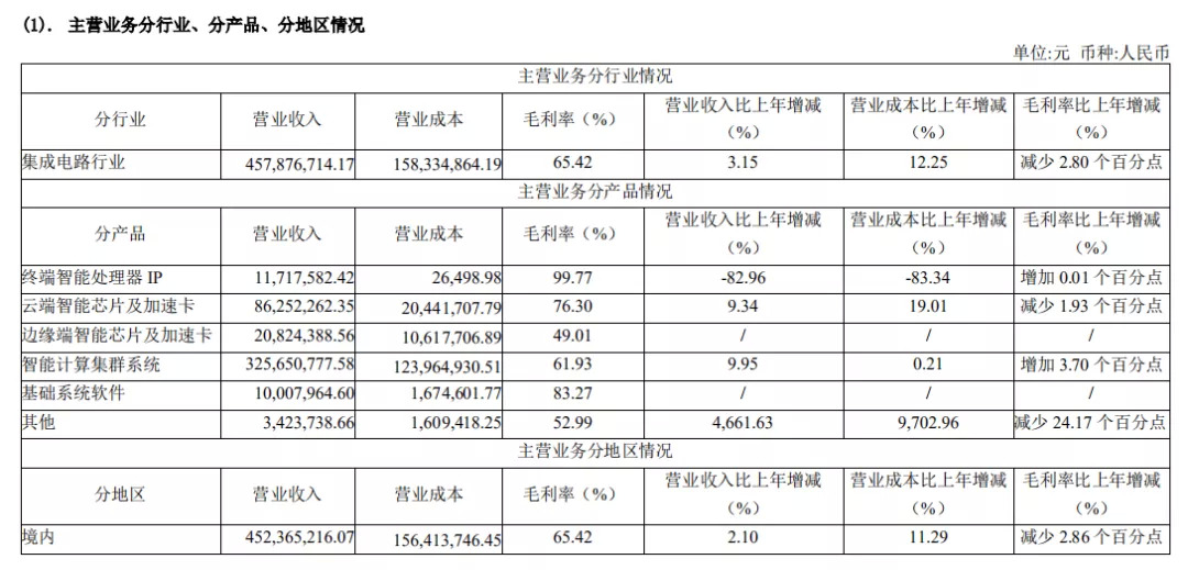 具体业务表现上,在与华为合作期间,寒武纪智能终端处理器设计的营收占比一度高达97%,但是和华为分手之后,这一部分业务的营收占比不到3%。