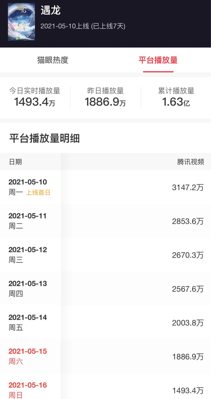 乙女游戏成为香饽饽,但乙女游戏相关剧集却在持续遇冷。迄今为止,《遇龙》和《完美的他》已开播一周左右,猫眼专业版数据显示,《遇龙》和《完美的他》在全网热度榜上排在前十开外。上线至今,《遇龙》在腾讯视频的单日播放量持续走低,《完美的他》虽营销发力较猛,但单日热度在开播第三日后便停止增长,如今已有下跌之意,可见两部剧对观众的吸引力都在下跌。