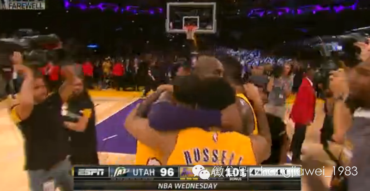 “哦?科比还在打球。哦?科比又得了多少分啦?”